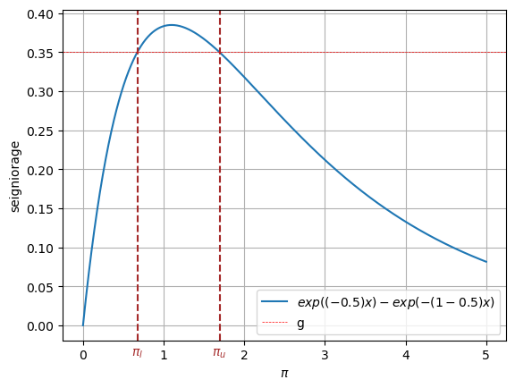 As in our earlier lecture Inflation Rate Laffer Curves, we can compute the two prospective limiting values for
